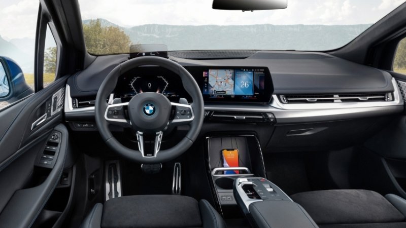 Modern bir tasarıma sahip olan iç mekanda daha kaliteli malzemelerin kullanıldığını açıklayan BMW, iX'te bulunan yeni BMW Kavisli Ekranı 2 Serisi Active Tourer'da da kullanmış. Sistem, 10,25 inç dijital gösterge paneli ve 10,7 inç bilgi-eğlence ekranından oluşuyor. Bilgi-eğlence ekranı Android Auto ve Apple CarPlay entegrasyonunu destekliyor. Ek olarak bilgi-eğlence ekranı, BMW İşletim Sistemi 8'i çalıştırırken, Akıllı Kişisel Asistan'ın yanı sıra 5G bağlantısına da sahip. 2 Serisi Active Tourer'da ayrıca deri kaplı spor direksiyon simidi, çift bölgeli otomatik klima kontrol sistemi, dört adet USB-C bağlantı noktası ve Sensatec veya Vernasca deri döşeme ile sipariş edilebilen yeniden tasarlanmış koltuklar sunuluyor.