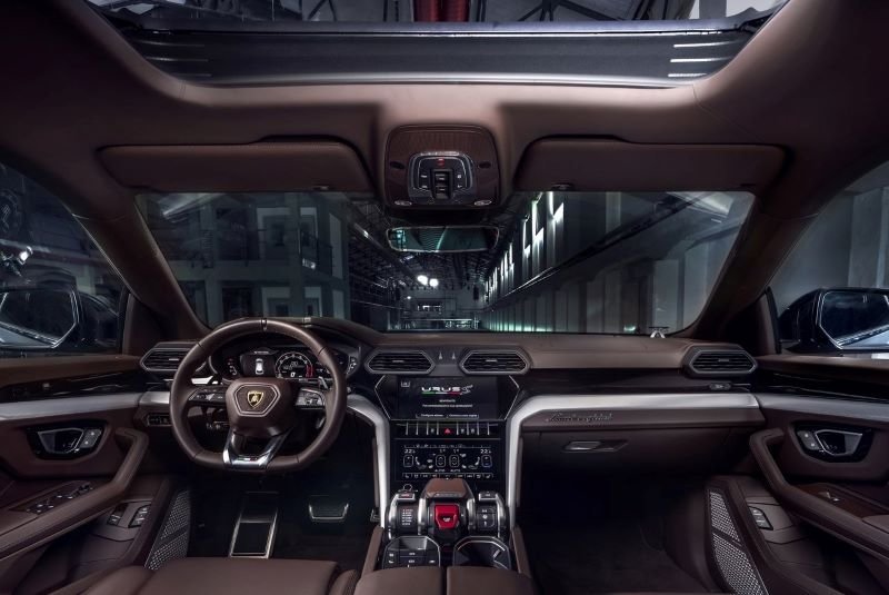 Urus S'nin iç mekanında yeni döşeme rengi seçenekleri sunulurken Urus Performante'de olduğu gibi dikişlerin belirgin olarak yer aldığı desenli koltuklar dikkat çekiyor Daha fazla konfor sunduğu belirtilen Urus S'te siyah deri kaplama, krem ve kahverengi renk kombinasyonları öne çıkıyor.